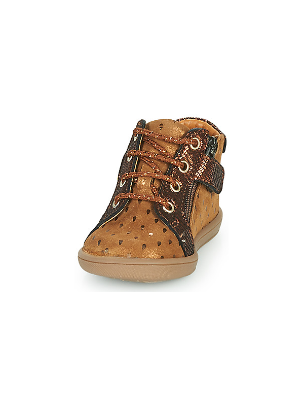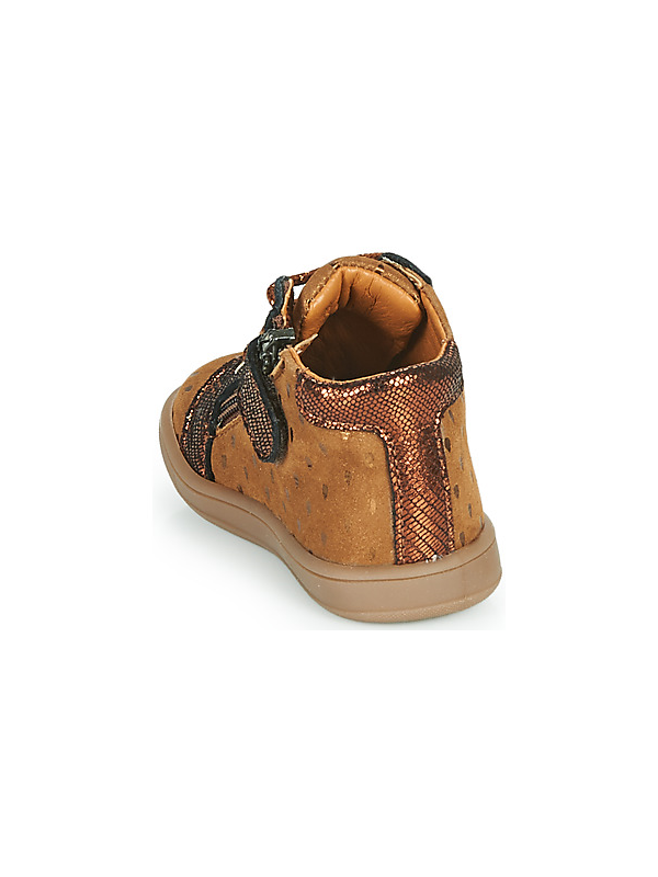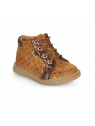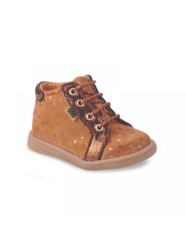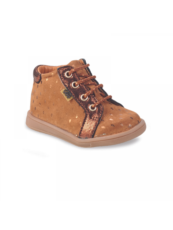Idéal pour accompager les premiers pas grâce au conrefort asymétrique qui apporte un bon maintien au pied du bébé. Arrirère ergonomique et emboitant. Semelle fine et souple. Doublure et semelle intérieure cuir. Fermeture zippée en plus du système de lacets qui permet un bon ajustement du chaussant.