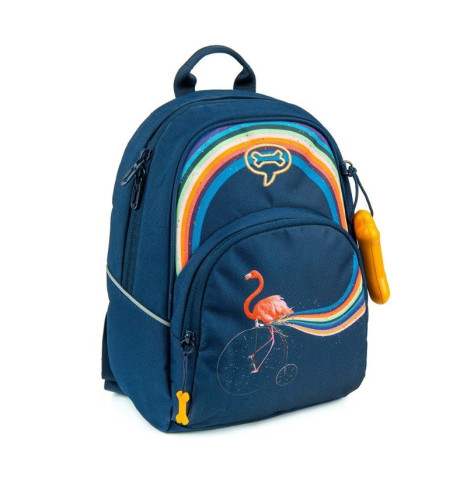 Un sac à dos pratique pour les tout-petits, équipé d'un compartiment spacieux et une poche séparée à l'avant pour une meilleure organisation. Une bande réfléchissante discrète offre sécurité et visibilité sur la route. Idéal pour la maternelle et/ou les excursions d'une journée.