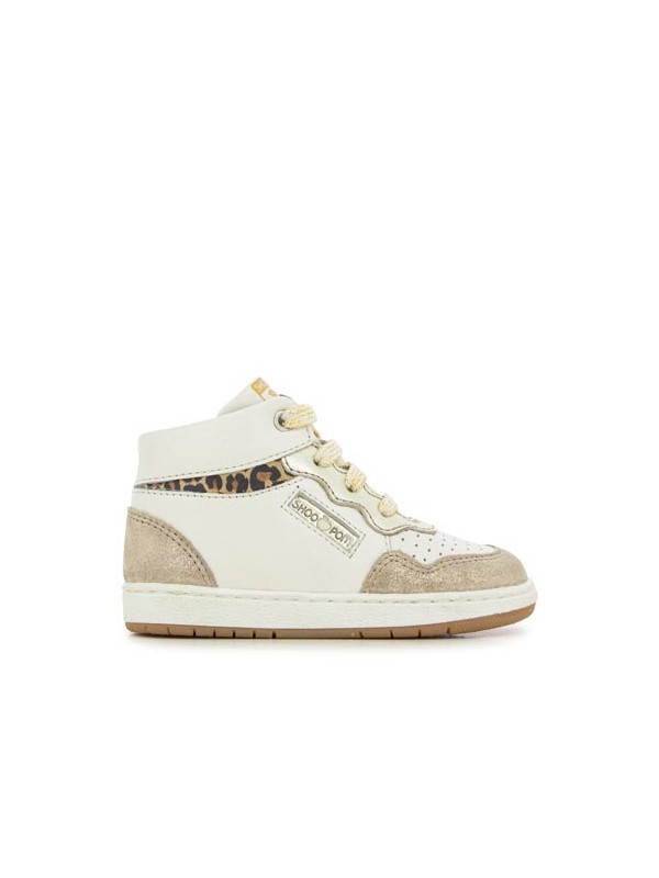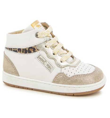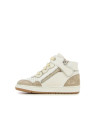 Cette basket à lacets pour enfants est présentée dans une version en cuir beige et platine. Cette chaussure souple et légère est conçue avec des matériaux de qualité pour le bon développement du pied. Sa tige haute avec laçage permet un bon ajustement et maintien de la cheville. Elle se chausse et se déchausse facilement grâce à son zip intérieur.