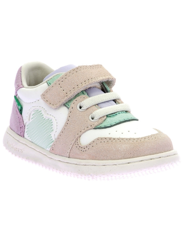 BASKETS KICKERS KICKBROWNIE BLANC ROSE VERT