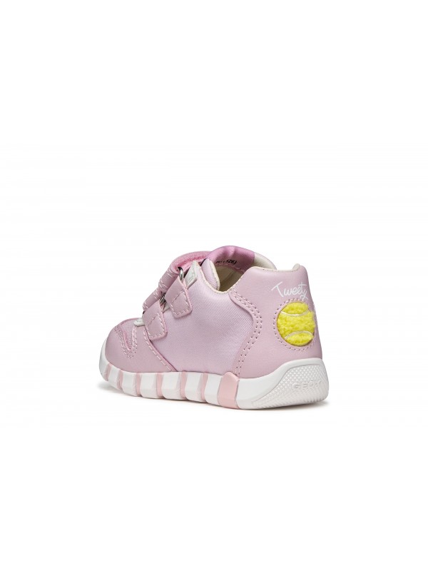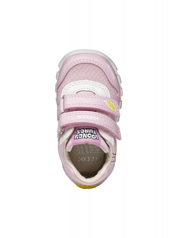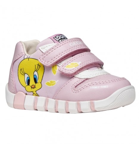 Sneaker souples et avec effet amortissant pour les premiers pas des bébés, nées de la collaboration entre Geox et Warner Bros. Dans cette version rose, elles présentent des motifs dédiés au personnage des Looney Tunes, Titi. Réalisées en tissu et en matière effet cuir, les Iupidoo sont légères et respirantes, les compagnes idéales pour ses premières aventures.