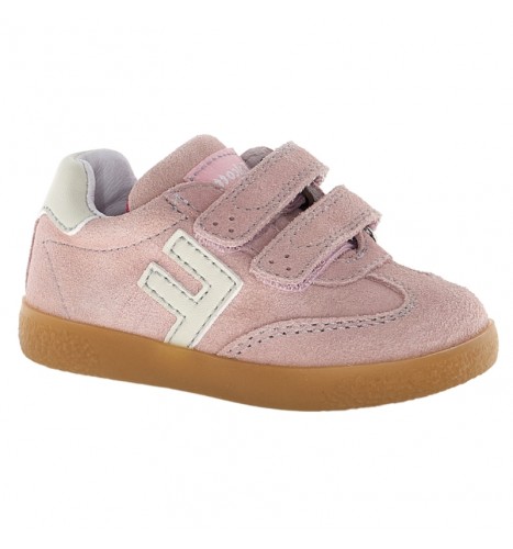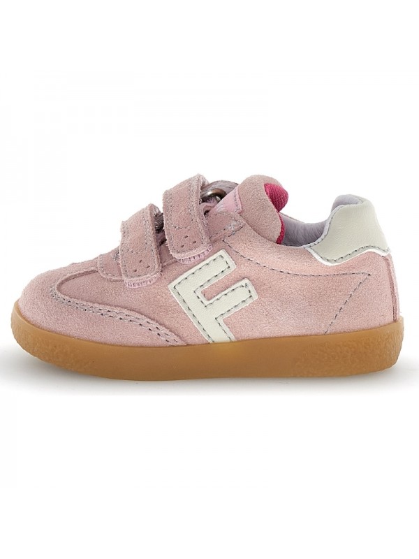 Idéales pour accompagner les premiers pas, ces baskets offrent un confort unique. Fabriquées en daim de haute qualité avec des insertions en cuir, elles assurent douceur et résistance. La fermeture avec deux velcros facilite l'ajustement et le réglage, tandis que la semelle extérieure en caoutchouc souple favorise une marche sûre et stable, idéale pour les pieds en croissance.