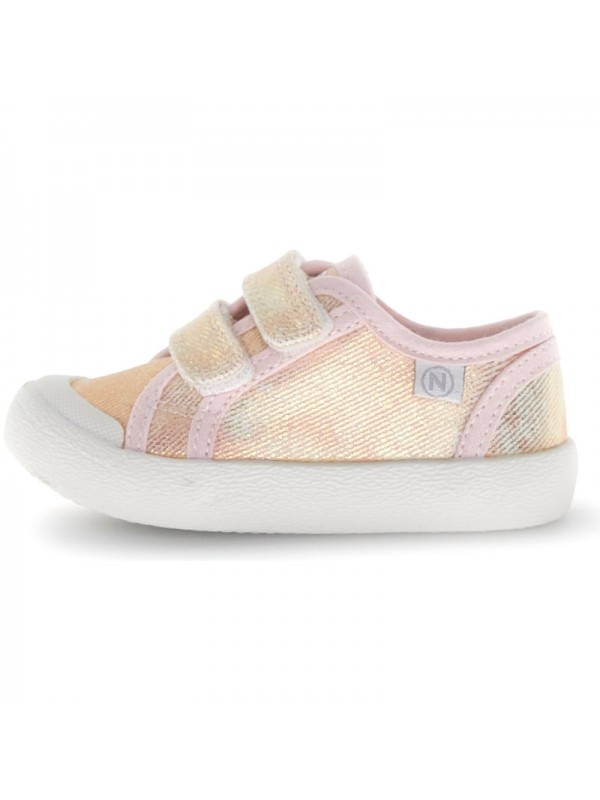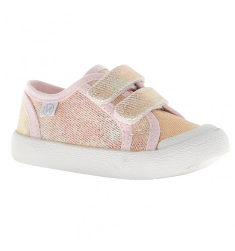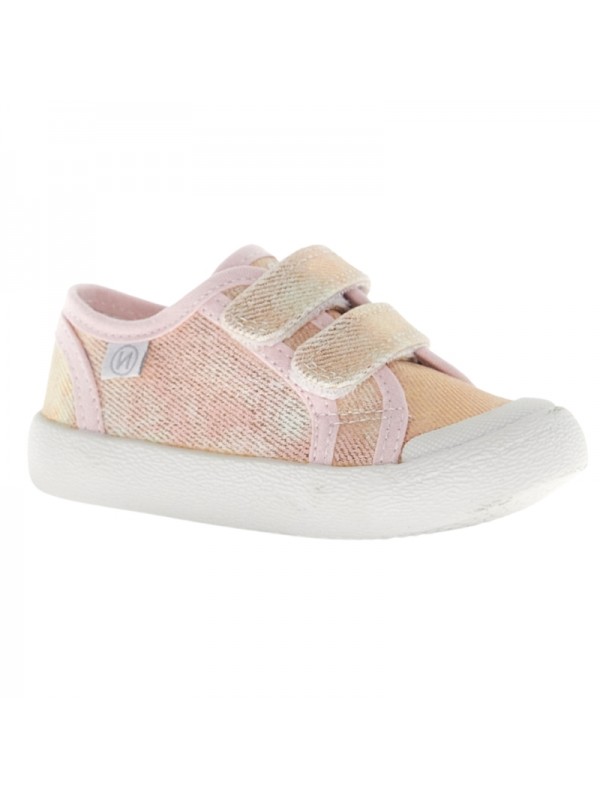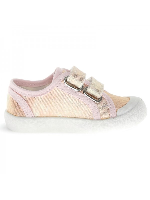 Basket en toile délavée avec fermeture double scratch, doublure en tissu et semelle en caoutchouc avec bout renforcé.