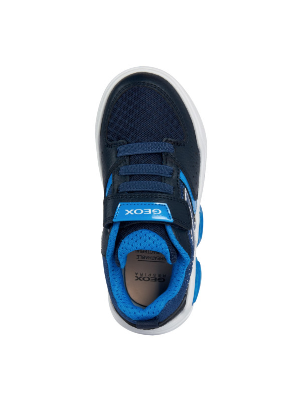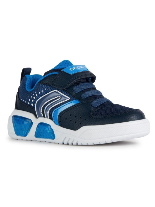 Sneakers junior confortables et amorties, au look sportif et dynamique. Proposées ici dans des tons marine et bleu ciel, les Illuminus se font remarquer par leur design actif, avec une tige en matière à effet cuir foulonné et tissu brillant. Les lumières intégrées dans la semelle extérieure offrent une énergie inépuisable pour affronter n’importe quel moment de la journée.