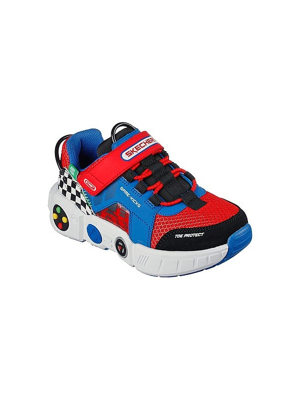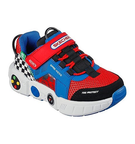 Amusez-vous dans un confort exceptionnel avec les Skechers Game Kicks® : chaussures Gametronix. Cette sneaker légère est dotée d’une tige en maille et matière synthétique avec un design ludique sur le thème du jeu, ainsi que d’une semelle intérieure en mousse à mémoire de forme Skechers Air-Cooled Memory Foam® aérée et d’une semelle extérieure en caoutchouc durable.