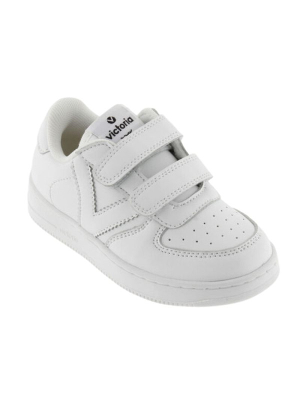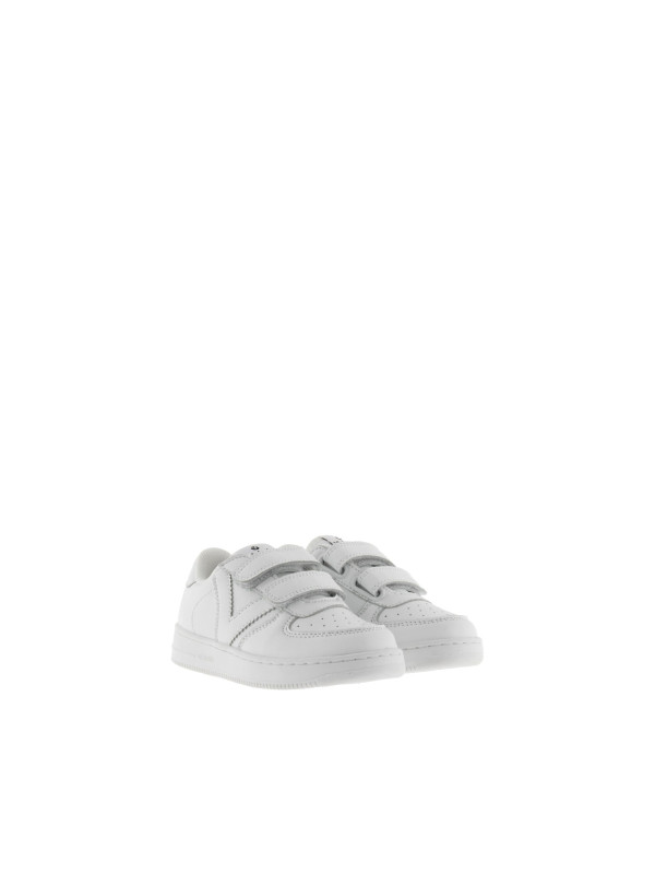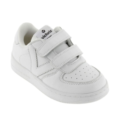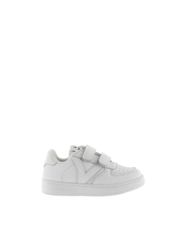 Nouvelles baskets blanches effet cuir pour enfants. Très faciles à mettre et à enlever grâce aux fermetures à scratch, qui facilitent le chaussage et l'autonomie tout en s'ajustant parfaitement au pied.Elles affichent le logo victoria sur le côté, ainsi qu'un détail contrastant sur le talon.