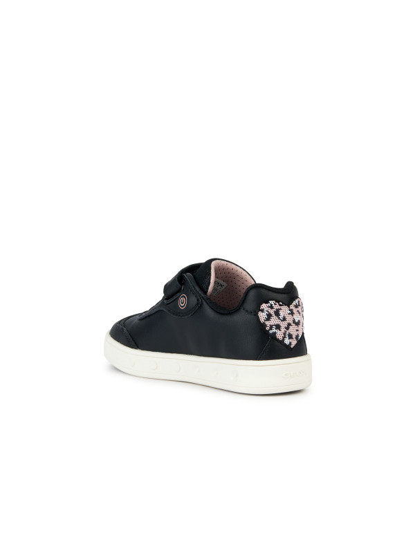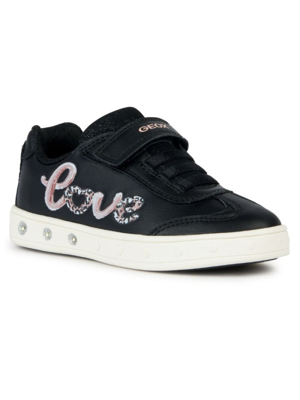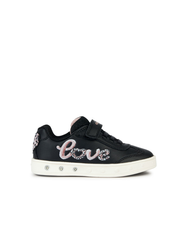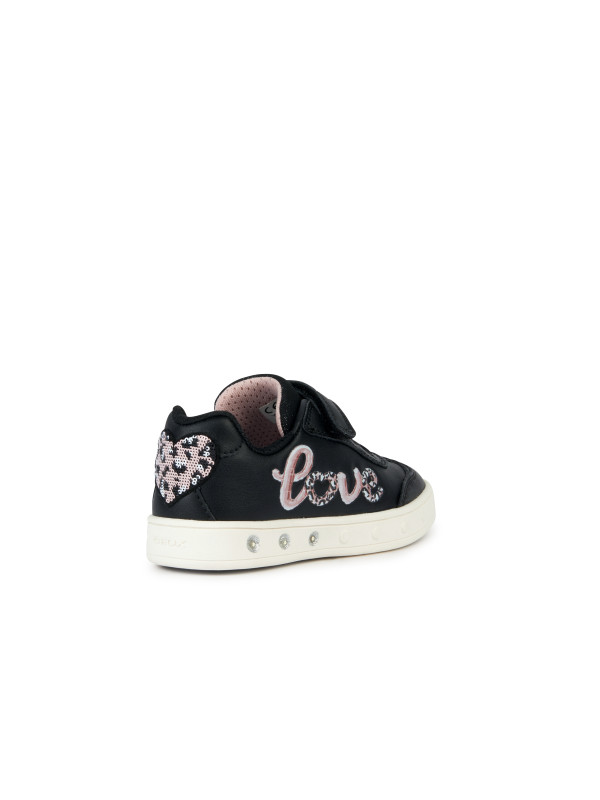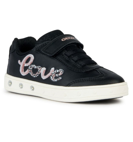 Sneakers basses pour fille confortable et respirantes, au charme sportif chic. La tige noire d’inspiration tennis se fait remarquer par de romantiques applications rose clair. Réalisées en matière à effet cuir et tissu brillant, les Skylin présentent des lumières intégrées dans la semelle extérieure qui illuminent n’importe quel look.