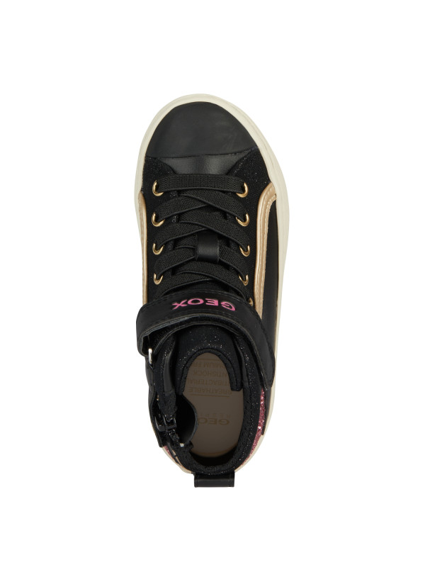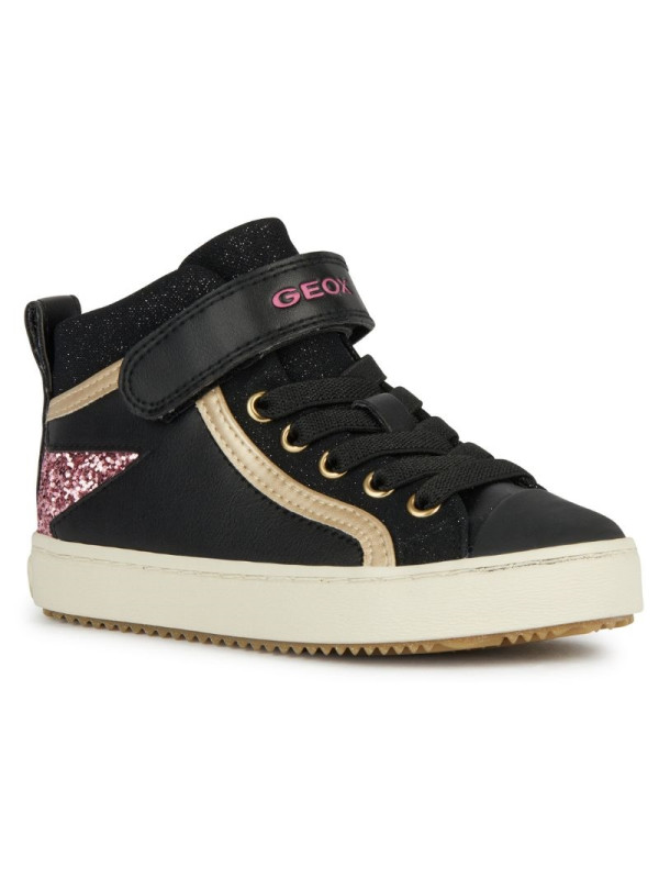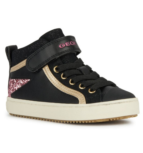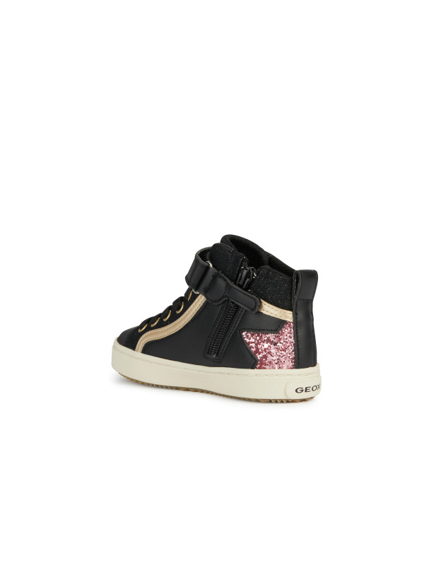 Sneakers pour fille offrant confort et respirabilité, dans une version glamour. Le noir de la tige en matière à effet cuir avec une étoile glitter rose, associé à la matière à effet cuir nacré, confère aux Kalispera la polyvalence d’un style urbain. Idéal pour les tenues décontractées, ce modèle est également adapté aux looks citadins plus sophistiqués grâce à ses accents lumineux au charme glamour.