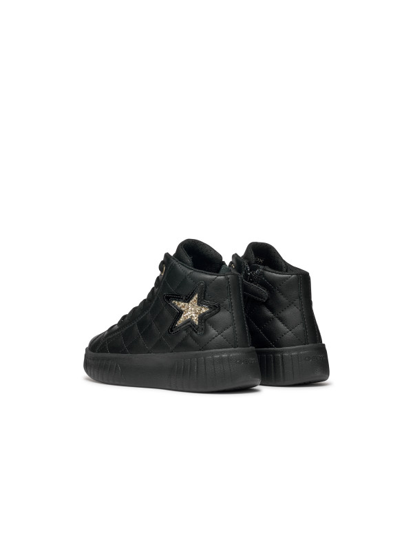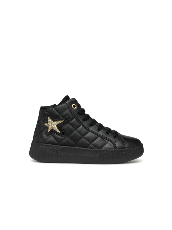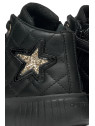 Sneakers pour fille décontractées et féminines, modèle incontournable du style streetwear citadin. Déclinées en noir ou doré, ces chaussures arborent une étoile scintillante de couleur or sur la tige, qui donne une touche glamour à n’importe quelle tenue quotidienne. Réalisées en matière à effet cuir, tissu et matière à paillettes, les Mikiroshi sont souples, légères et respirantes.