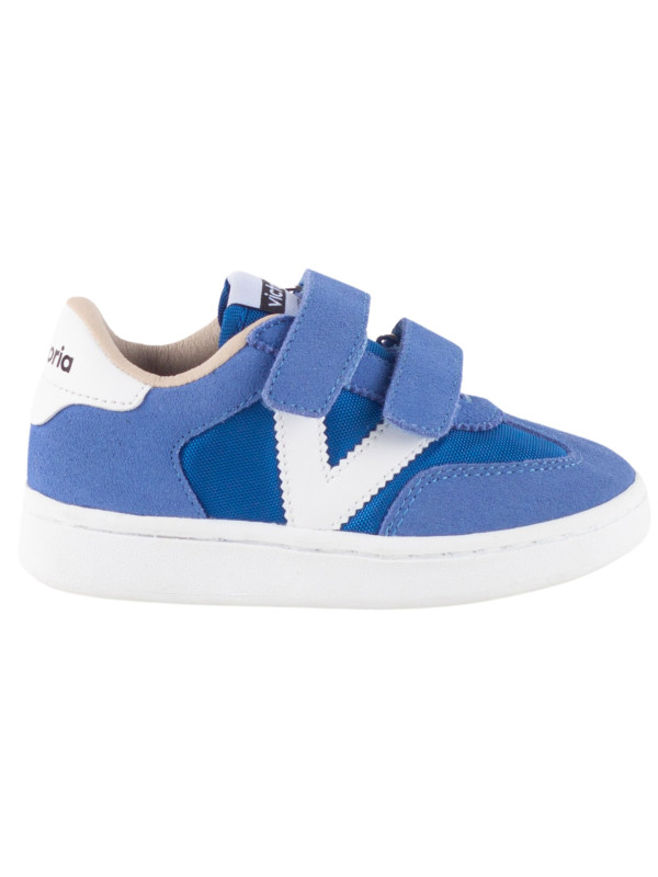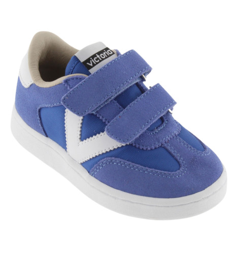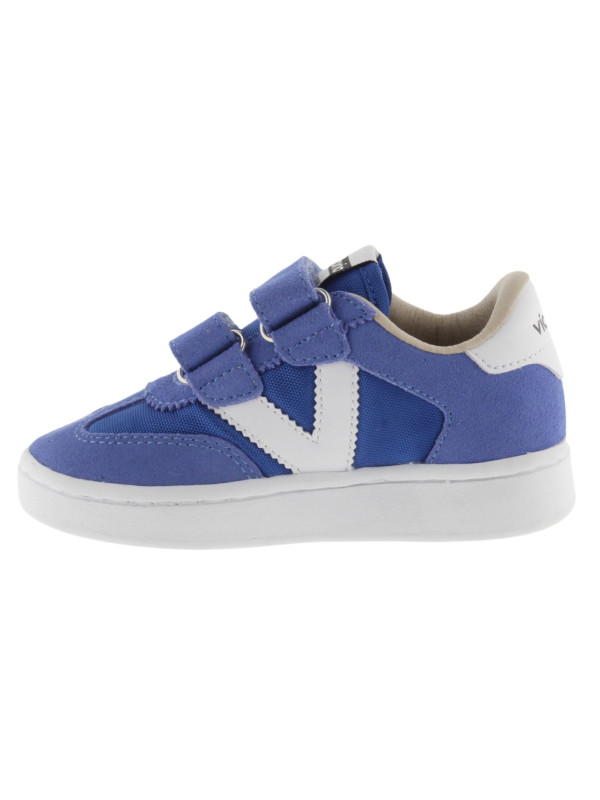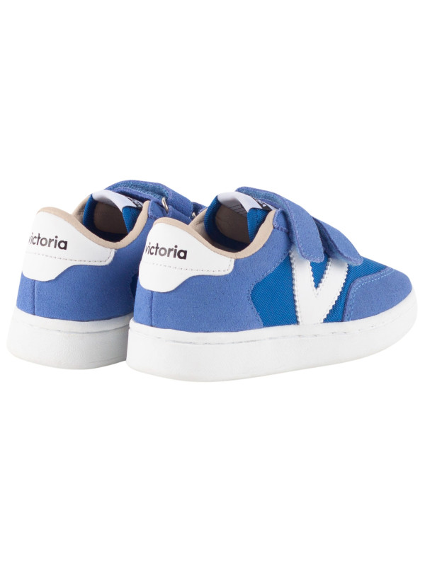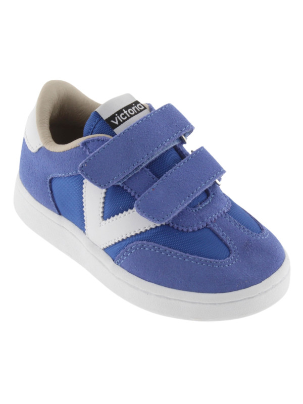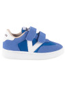 Baskets de sport pour enfants en nylon et pièces en cuir fendu et effet cuir superposées. Logo victoria gravé à l'arrière et nouvelle coupe cycliste sur la pointe pour une touche de style supplémentaire. Fermeture à double scratch pour un chaussage plus facile et un ajustement parfait.