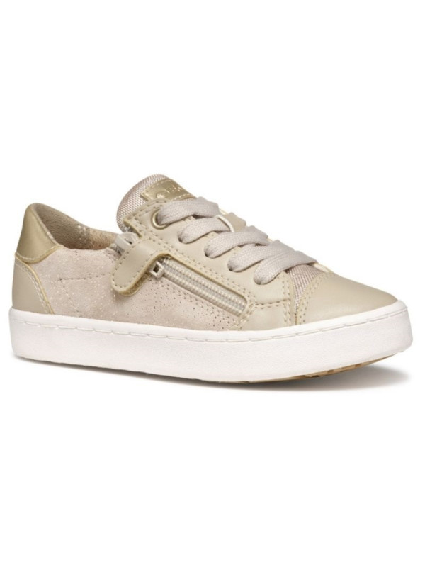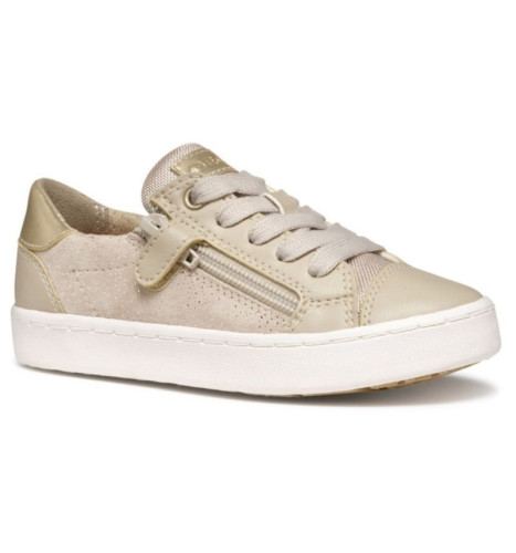 Sneakers basses pour fille souples et respirantes, au look urbain et féminin. La tige beige de ce modèle, ornée d’un délicat décor à paillettes de couleur platine, est dotée d’une fermeture éclair latérale pratique pour un enfilage facile et rapide. Réalisées en daim imprimé et matière à effet cuir, ces chaussures ajoutent une touche glamour aux tenues décontractées de la belle saison.