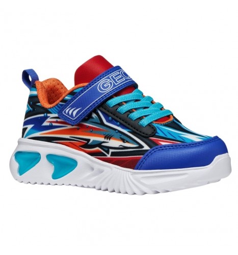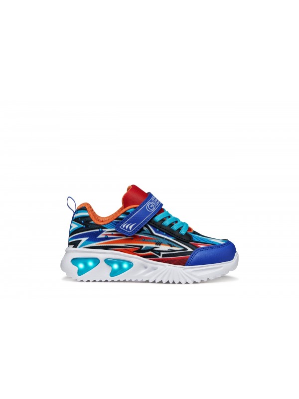 Sneaker pour garçon au style actif parfait, avec effet amortissant et confortable. Dans cette version qui mélange le bleu royal et l'orange, Assister a une empeigne audacieuse, parfaite pour égayer les looks sportifs et scolaires. Réalisée en mesh et en matière effet cuir embossé, elle présente des lumières intégrées dans la semelle extérieure pour illuminer le plaisir à chaque pas.
