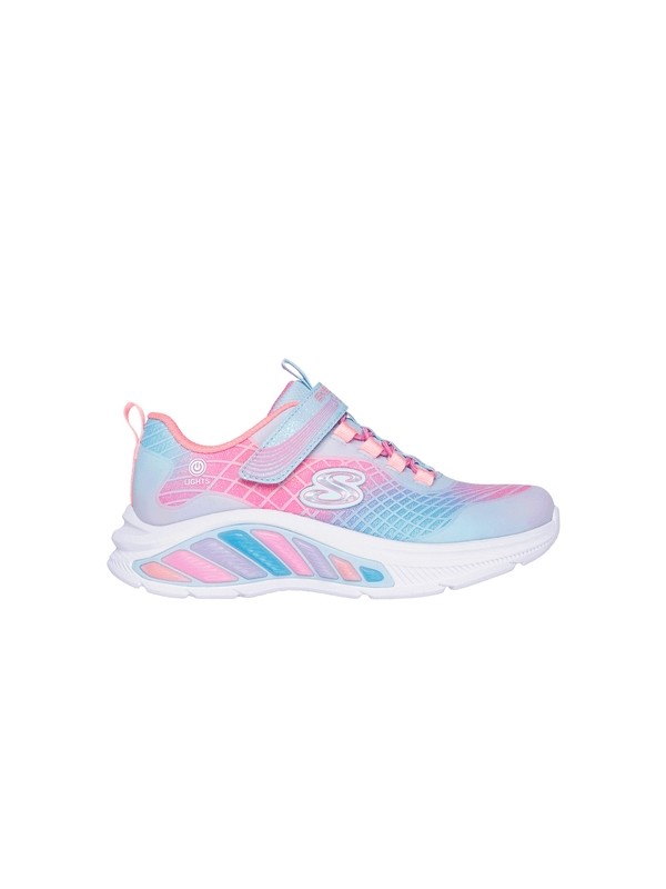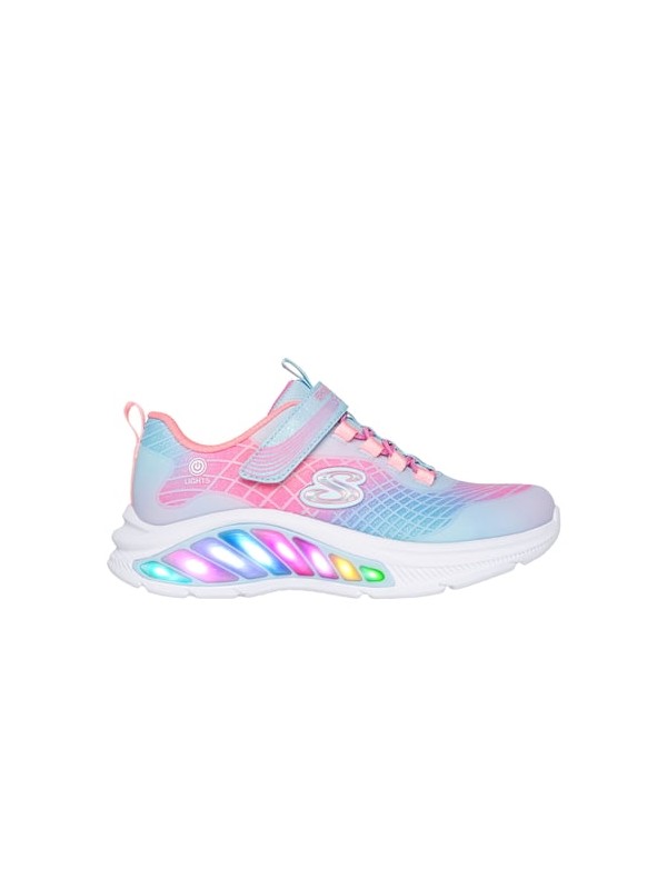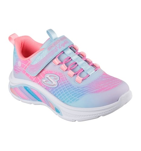 Des lumières ludiques et une touche colorée s’allient dans la Skechers Rainbow Cruisers - Rainbow Reflectin. Cette basket lumineuse est dotée d’une tige en maille ombrée étincelante et en synthétique, de lacets extensibles et d’une fermeture adaptative Skechers.