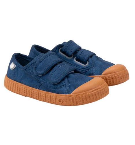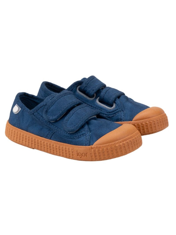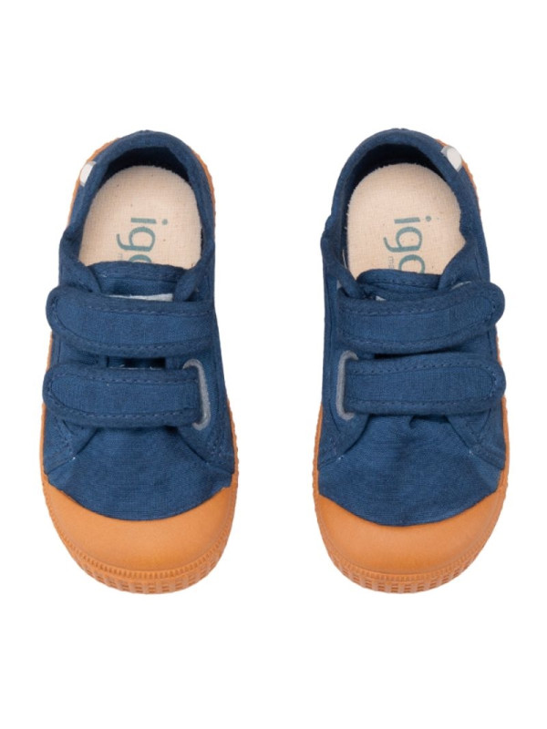 Baskets souples en toile BERRI de chez IGOR, fabriqués en Espagne, lavable en machine, facile à enfiler grace aux deux velcros.