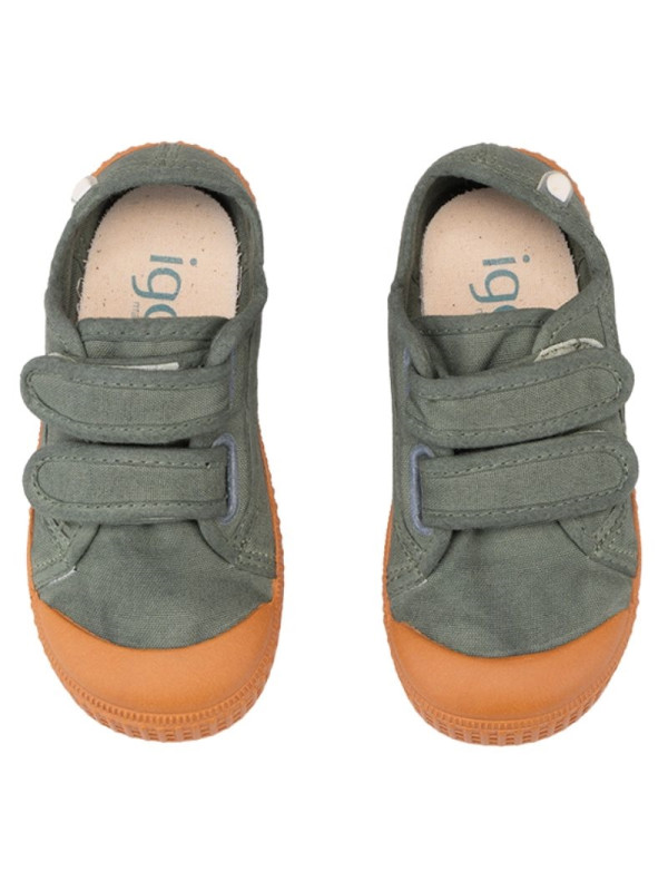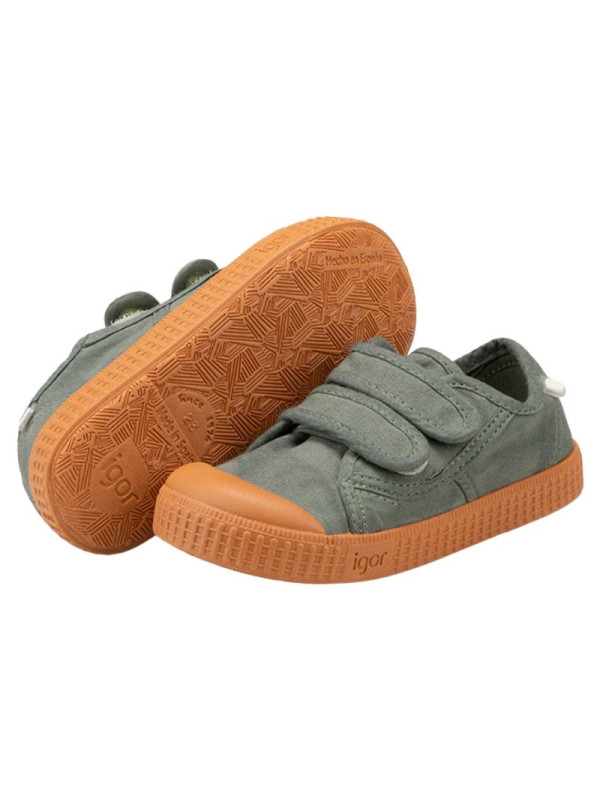 Baskets souples en toile BERRI de chez IGOR, fabriqués en Espagne, lavable en machine, facile à enfiler grace aux deux velcros.