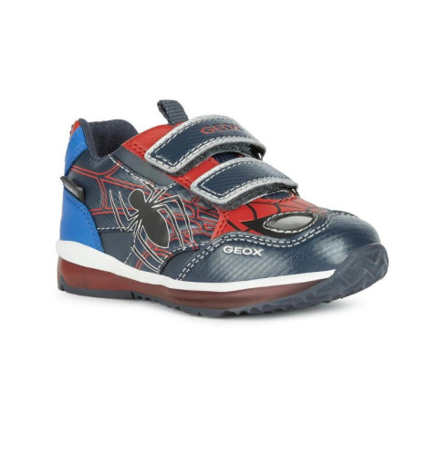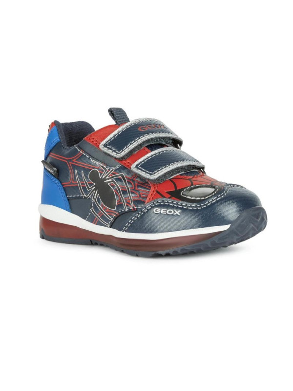 Derniers articles en stockSneakers pour bébé respirantes et faciles à enfiler, dédiées aux petits fans de Spider-Man. Proposées ici dans une joyeuse combinaison de noir et gris, les Todo sont le fruit de la collaboration spéciale entre Geox et Marvel. La tige de ces chaussures associe matière à effet cuir imprimé et matière à effet cuir et leur semelle extérieure transparente est dotée de lumières intégrées pour amuser les enfants à chaque pas.