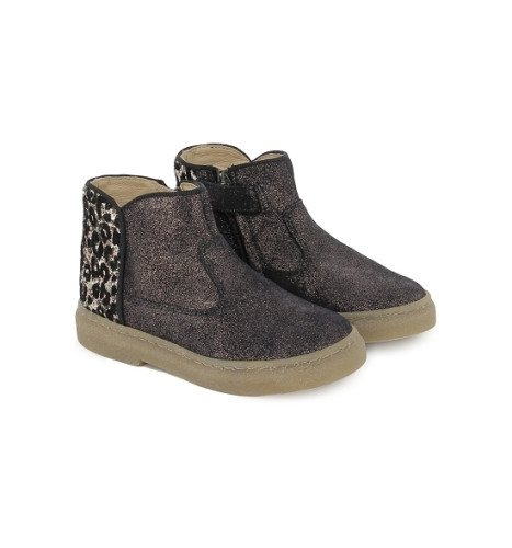 Cette bottine en cuir velours brillant et léopard à l'arrière, allie style et confort au quotidien. Facile à enfiler grâce à son zip intérieur, elle maintient bien le pied tout en restant souple. Sa première de propreté en cuir assure un bon confort du matin au soir.