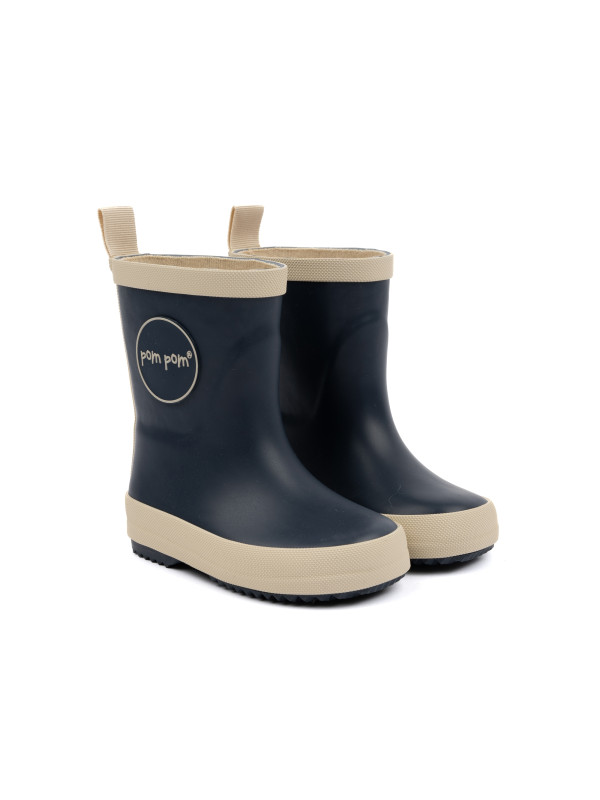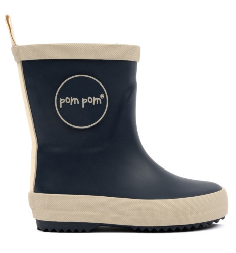 Bottes en caoutchouc Pom Pom®. Superbes bottes en caoutchouc naturel à l'aspect mat, avec bride arrière et logo sur le côté. Doublure intérieure textile et semelle amovible. Souples et flexibles, ces bottes présentent une semelle à nervures pour une bonne adhérence.