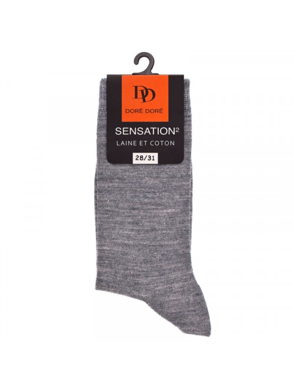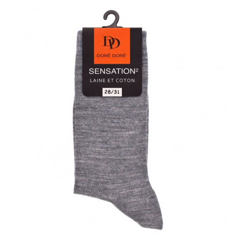 Chaussettes Doré Doré Sensation2 gris clair sont en laine mérinos et coton égyptien. La laine restitue la chaleur tandis que le coton apporte la douceur au contact de la peau. Ces chaussettes sont fines et élégantes. Les pointes sont remaillées maille à maille et sont imperceptible dans la chaussure. Bord élastique confort ne comprimant pas la jambe. Taillage et forme optimisés. Confort absolu. Produit unique et novateur en termes de confort et de durée de vie.