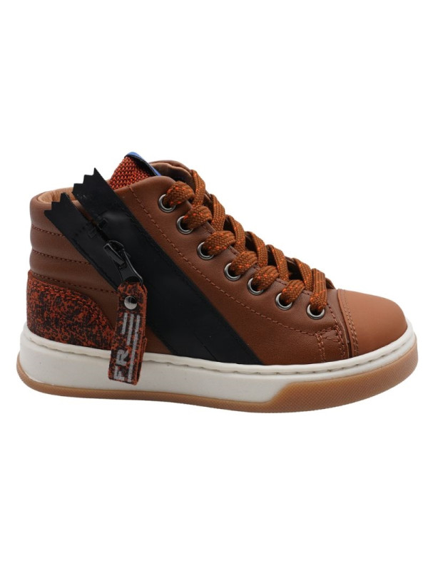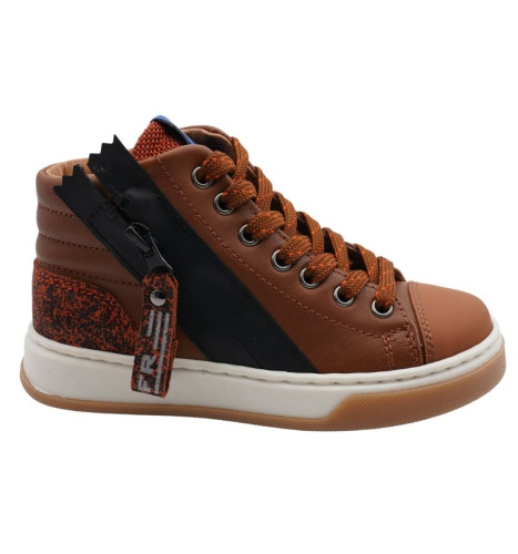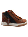 Chaussures montantes garçon avec lacets et zip. Tige en cuir, bout en caoutchouc. Doublure en cuir. Facile à ajuster grâce au lacet et facile à enfiler râce à la fermeture zippée.