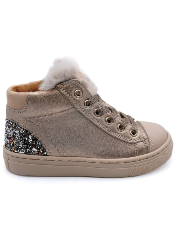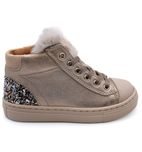 Chaussures montantes fille de chez ROMAGNOLI, entièrement cuir, facile à enfiler et à ajuster grâce à son lacet et son zip sur le côté.