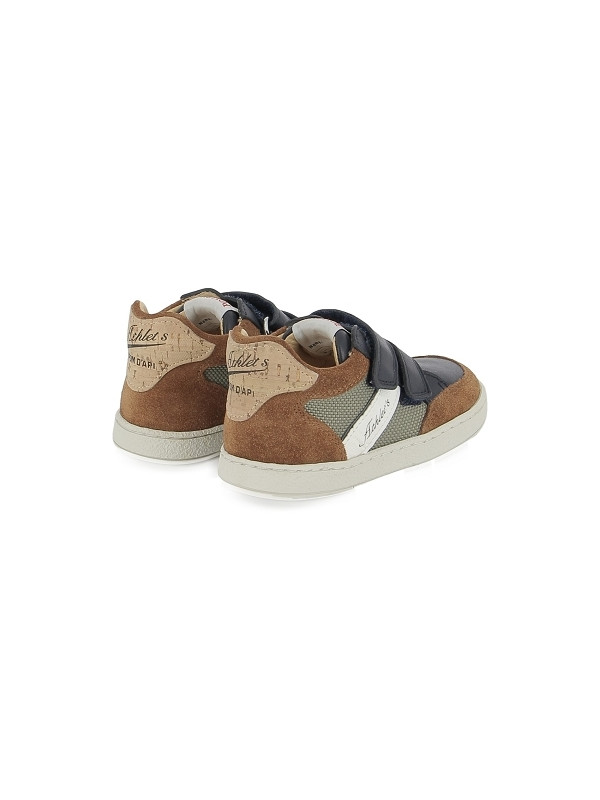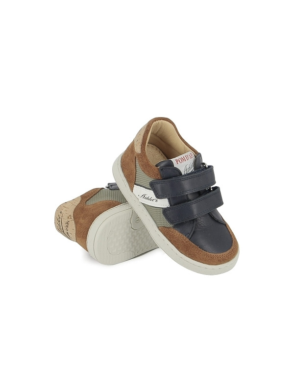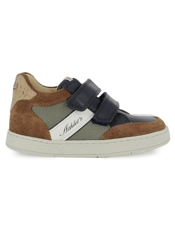 Cette basket premiers-pas pour enfants, issue de notre collection Athlet's, est présentée dans une version bi-matière en textile vert olive, cuir nubuck camel et cuir marine. Légère et dotée d'une semelle en caoutchouc, cette chaussure est conçue avec des matériaux de qualité pour le bon développement du pied et elle s'ajuste facilement à la cheville et au cou-de-pied grâce à ses bandes auto-agrippantes.