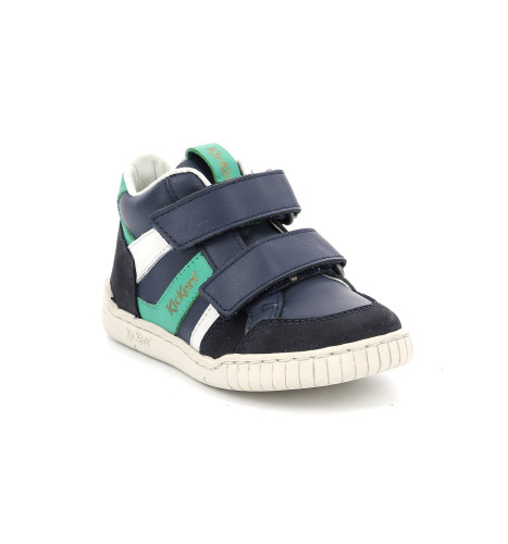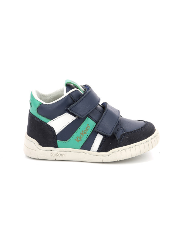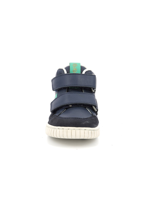 Sneakers Wincky de chez kickers, dessus cuir, doublure synthétique. Facile à enfiler grâce aux deux velcros.