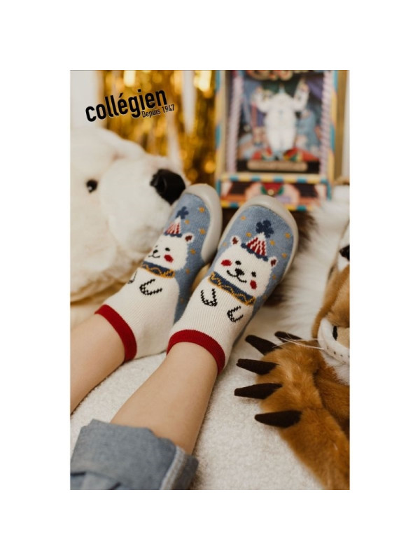 COLLEGIEN est une marque Française qui crée et fabrique des produits depuis 1947. Les chaussons-chaussettes sont lavable en machine à 30 °. Semelle ergonomique micro aérée pour ne pas transpirer. La semelle est souple, légère et confortable, grâce à ses picots elle est antidérapante. L'élasticité du lycra épouse bien la forme de chaque pied et assure un bon mantien.