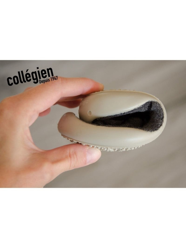 COLLEGIEN est une marque Française qui crée et fabrique des produits depuis 1947. Les chaussons-chaussettes sont lavable en machine à 30 °. Semelle ergonomique micro aérée pour ne pas transpirer. La semelle est souple, légère et confortable, grâce à ses picots elle est antidérapante. L'élasticité du lycra épouse bien la forme de chaque pied et assure un bon mantien.