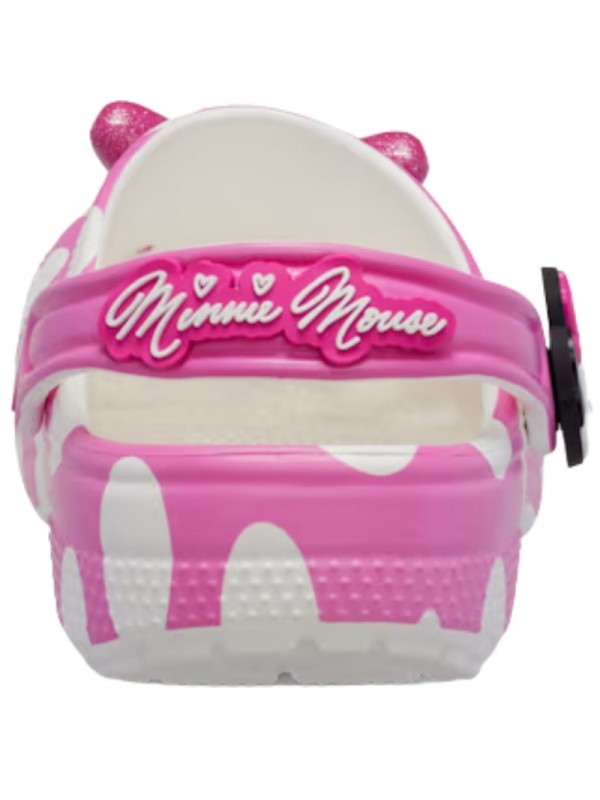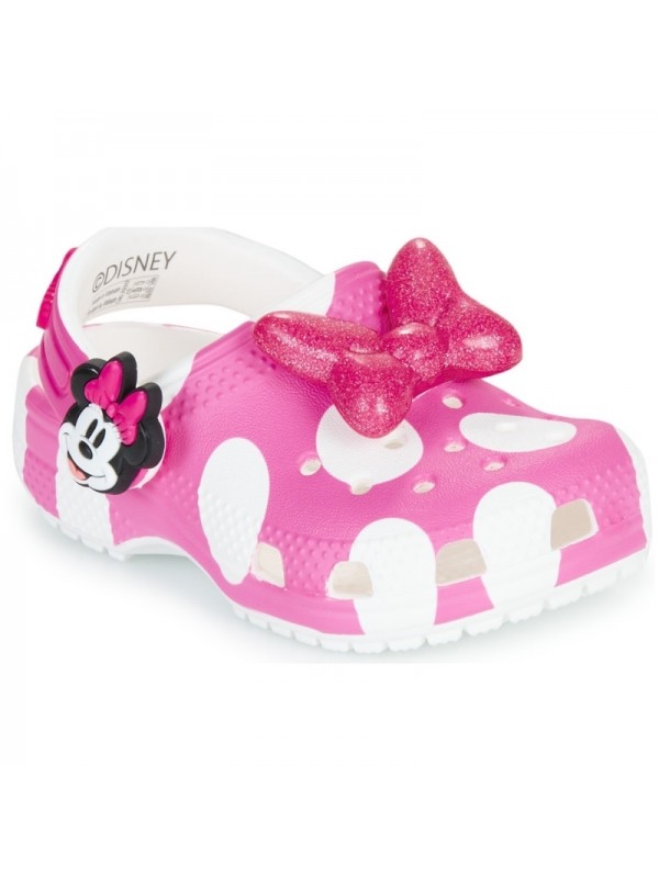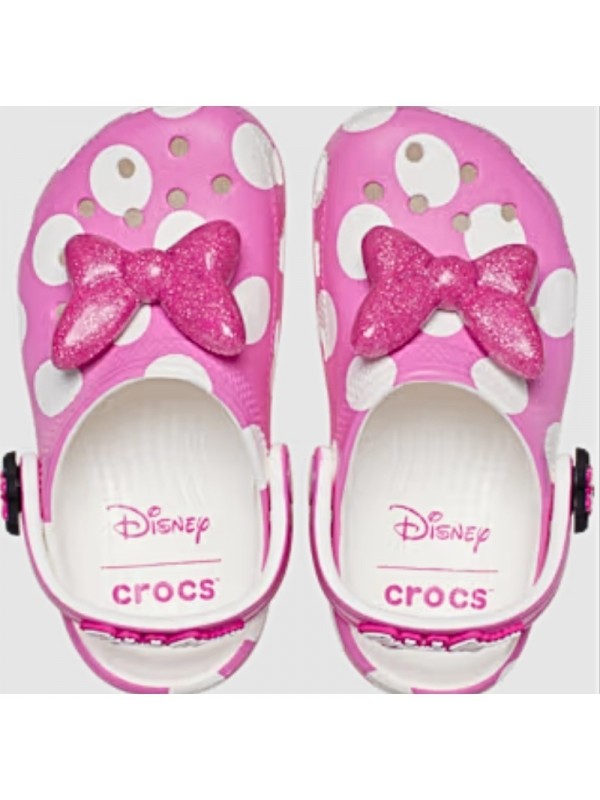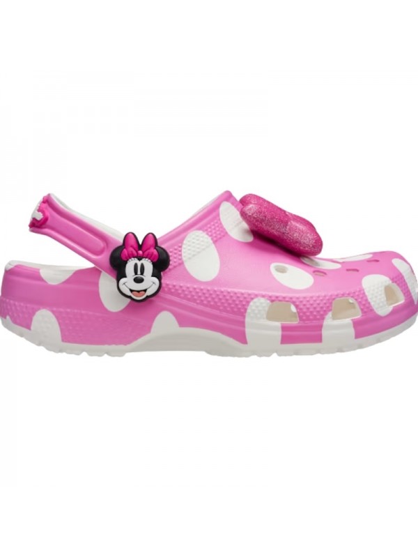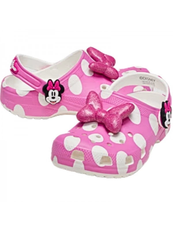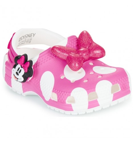 Ouiiiiiii, c’est le Sabot Classic Minnie Mouse de la collection Mickey & Friends de Disney ! Cet adorable Sabot Classic a été pensé en suivant le style iconique de Minnie Mouse, avec un imprimé rose à pois ainsi qu’un grand nœud rose et pailleté sur chaque chaussure. Chaque rivet est orné du visage de Minnie avec sa signature derrière la bride au talon