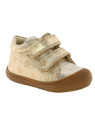 Les chaussures premiers pas les plus appréciées des enfants. Fabriquées en cuir doré très souple, elles disposent d’une conception spéciale à cheville rembourrée et talon renforcé, qui soutient les mouvements même des plus petits. Doublées de cuir à l'intérieur, elles sont dotées d'une semelle en caoutchouc souple qui s'élève pour épouser la pointe du pied, pour une protection optimale même pour jouer au sol.