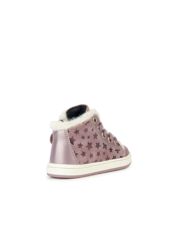 Sneakers semi-montantes pour petite fille avec détails en fausse fourrure, parfaites pour la saison froide. Déclinées ici en rose avec imprimé étoiles, les Trottola présentent une tige souple et féminine, réalisée en cuir nacré et cuir velours. Chaudes et confortables, ces chaussures sont idéales pour accompagner et soutenir au mieux votre enfant lors de ses premières aventures.