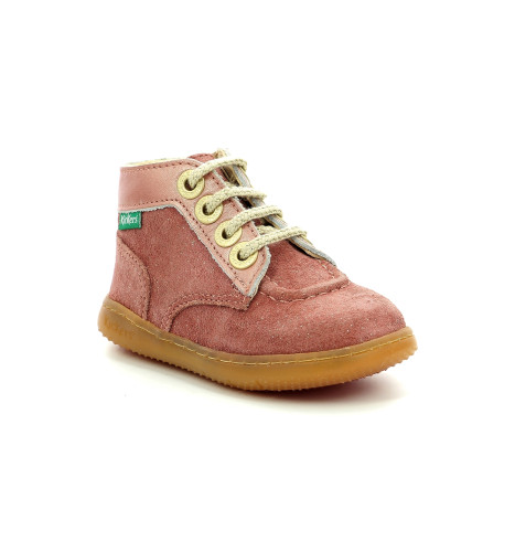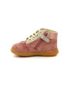 Modèle KICKBONZIP fille de chez KICKERS, entièrement cuir, facile à enfiler grâce à son lacet et son zip sur le côté, idéal pour les premiers pas de votre enfant.