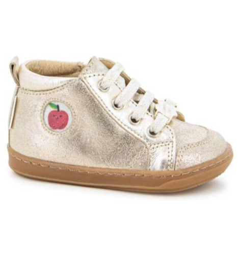 Bouba Babe est une chaussure premiers-pas mi montante, présentée ici dans une version cuir velours à paillettes platine. Cette chaussure est conçue à partir de matériaux de qualité : légère et souple pour un bon déroulement du pied. Elle a une tige haute avec laçage pour un bon déroulement de la cheville et du cou-de-pied. La semelle intérieure est amovible pour faciliter l’entretien. Elle se chausse et se déchausse facilement grâce à son zip intérieur.
