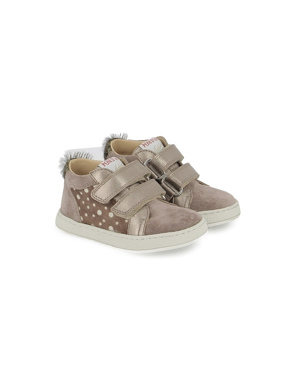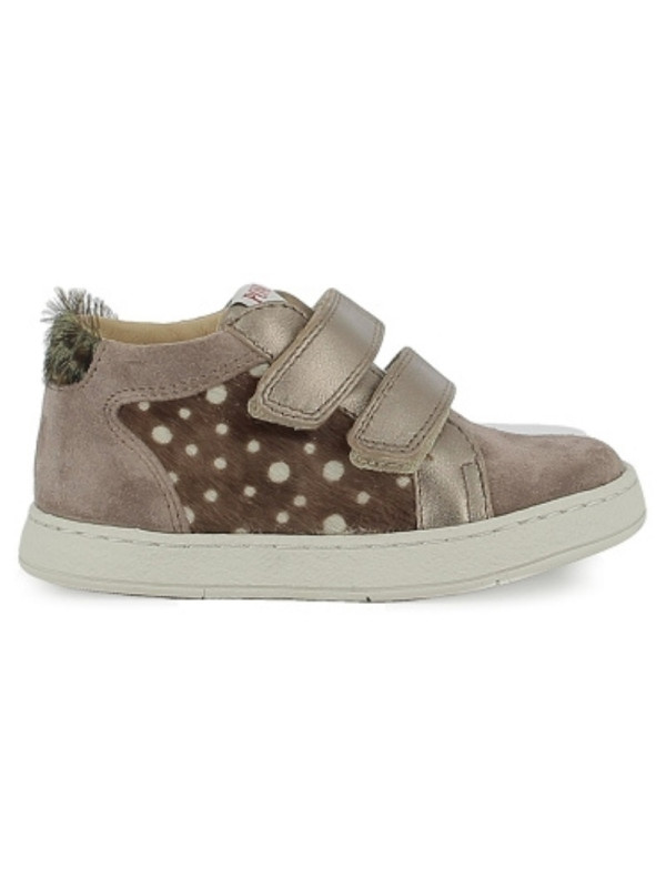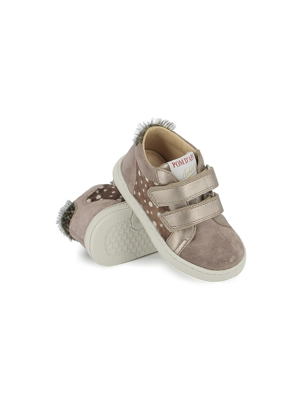 Cette basket adaptée aux premiers-pas est présentée dans une version bi-matière en cuir nubuck vieux rose et un imprimé faon.Cette chaussure souple et légère est conçue avec des matériaux de qualité pour le bon développement du pied. Elle s'ajuste facilement à la cheville et au cou-de-pied grâce à ses scratchs.