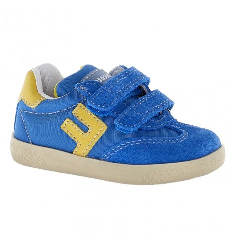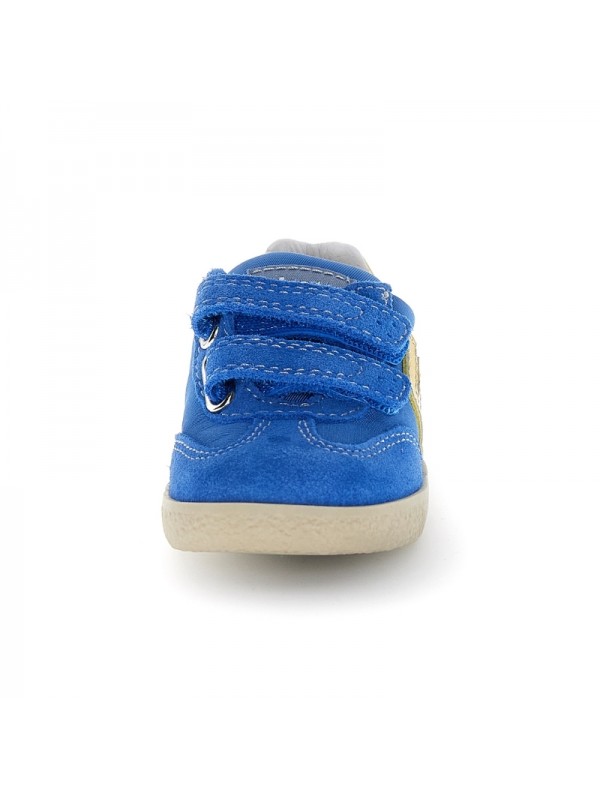 Idéales pour accompagner les premiers pas, ces baskets offrent un confort unique. Fabriquées en daim de haute qualité avec des insertions en cuir et tissu, elles assurent douceur et résistance. La fermeture avec deux velcros facilite l'ajustement et le réglage, tandis que la semelle extérieure en caoutchouc souple favorise une marche sûre et stable, idéale pour les pieds en croissance.