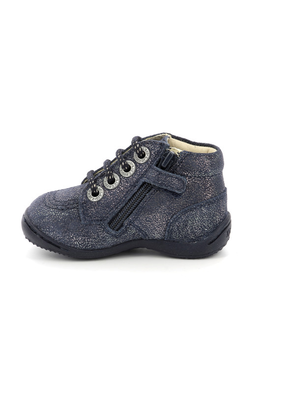 Botillon bébé Gulyflow de chez Kickers entiérement cuir idéal pour les premiers pas. Facile à enfiler grâce à son lacet et son zip latéral.