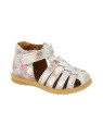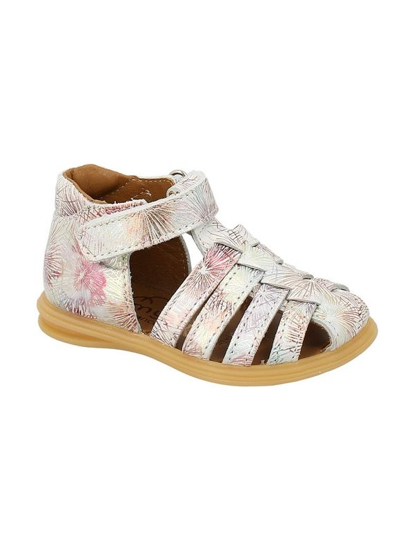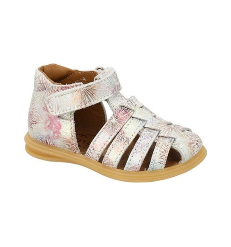 Ces chaussures en cuir accompagnent la croissance et les premiers pas de votre enfant. Cette sandale semi-ouverte est constituée d'un arrière avec contrefort. La hauteur de tige et la fermeture à velcro assurent également le meilleur maintien possible du pied de l'enfant. L'avant de la chaussure présente également un bout fermé pour protéger les orteils de l'enfant. La semelle est conçue pour favoriser la marche, elle est flexible et résistante. Ce modèle est fabriqué en France.