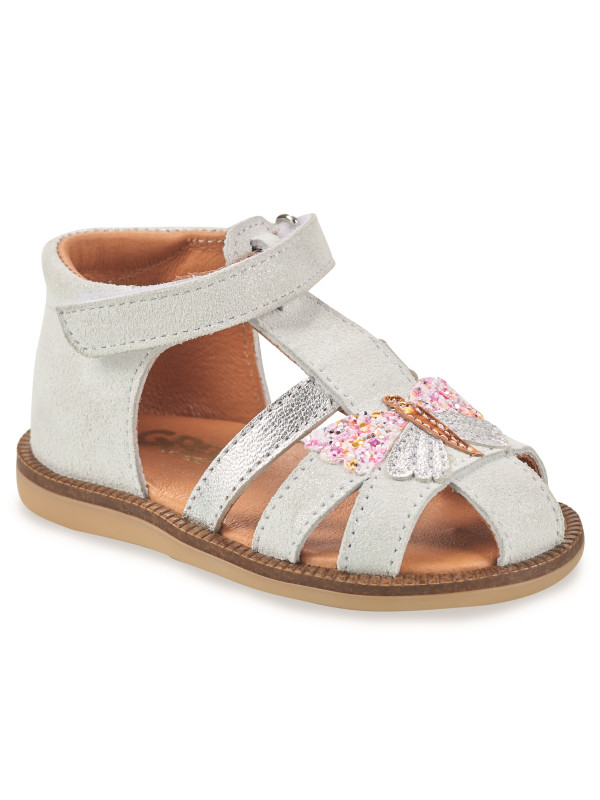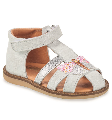 Sandale GBB LORETTE, idéale pour les premiers pas de votre enfant, entièrement cuir, semelle souple et confortable, facile à enfiler et à ajuster grace au velcro, très bon maintien du pied.