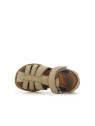 Cette sandale pour enfants est présentée dans une version en cuir nobuck gris. Cette chaussure souple et légère est conçue avec des matériaux de qualité pour le bon développement du pied. Elle se chausse et se déchausse facilement grâce à son scratch. Son bout fermé portège les orteils.