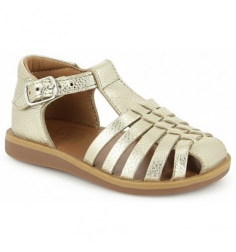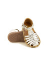 Cette sandale premiers-pas est présentée dans une version en cuir métallisé doré. Cette chaussure souple et légère est conçue avec des matériaux de qualité pour le bon développement du pied et l'apprentissage de la marche. Elle possède une tige haute pour un maintien optimal de la cheville et du cou-de-pied et elle s'ajuste facilement à la cheville grâce à sa boucle réglable.