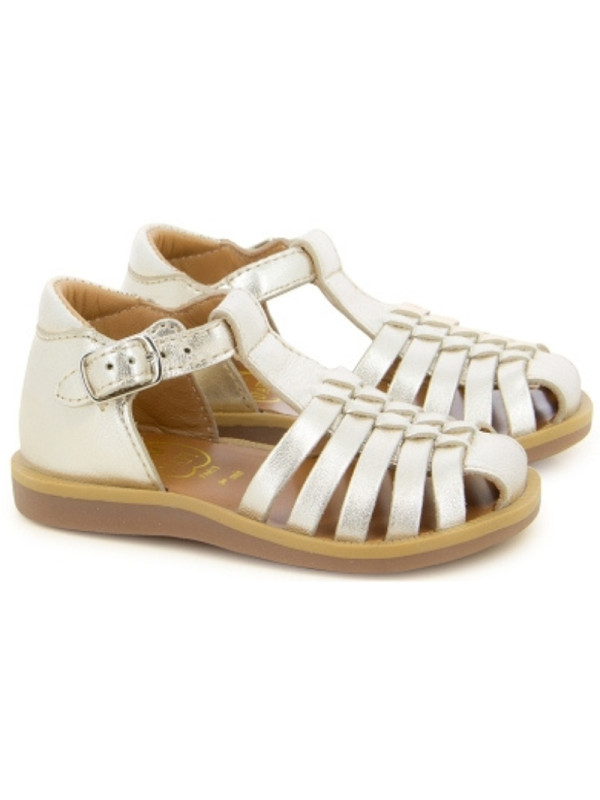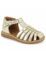 Cette sandale premiers-pas est présentée dans une version en cuir métallisé doré. Cette chaussure souple et légère est conçue avec des matériaux de qualité pour le bon développement du pied et l'apprentissage de la marche. Elle possède une tige haute pour un maintien optimal de la cheville et du cou-de-pied et elle s'ajuste facilement à la cheville grâce à sa boucle réglable.