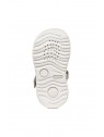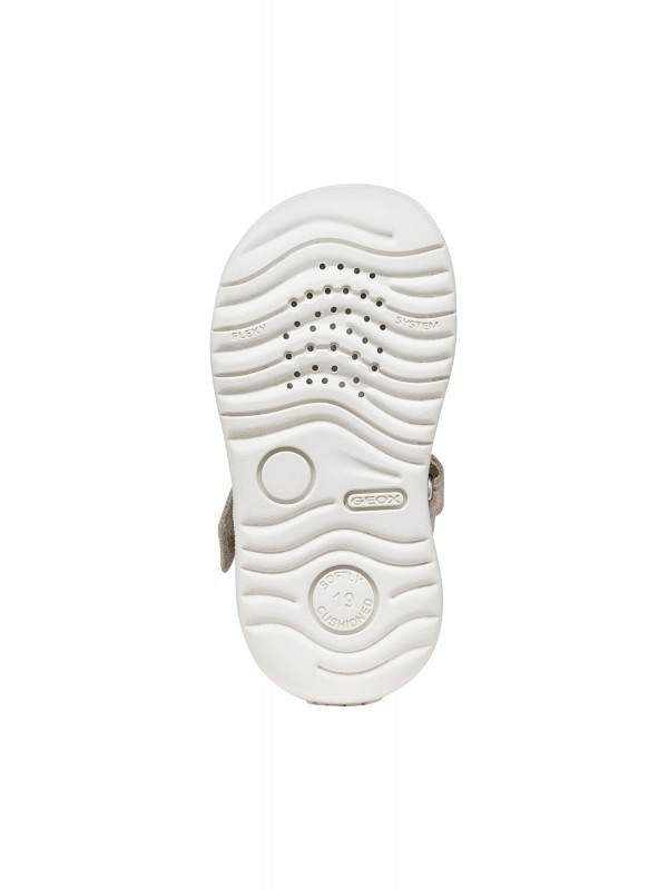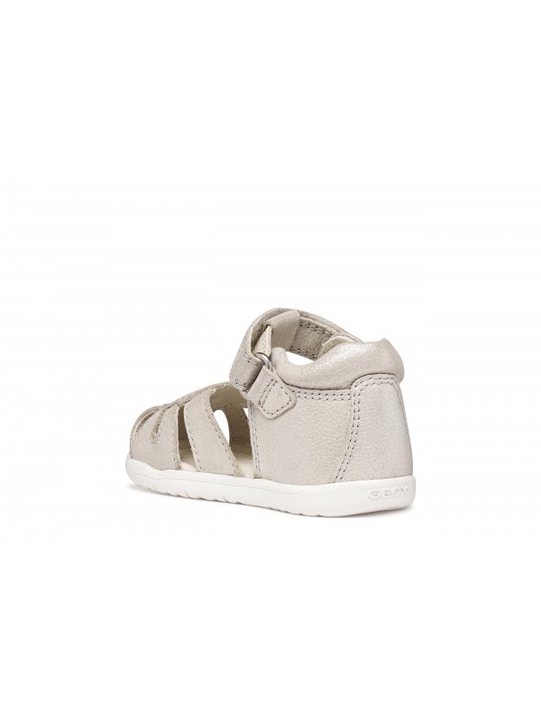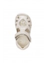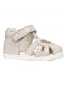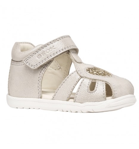 Sandale confortable et respirant pour les premiers pas des bébés filles, au look décontracté et désinvolte. Proposée ici en beige platine avec un coeur doré, Macchia arbore une empeigne en nappa , avec une pointe en cage et un talon fermé. La semelle extérieure flexible, résistante et antidérapante garantit un appui sûr, pour accompagner ses premières découvertes.