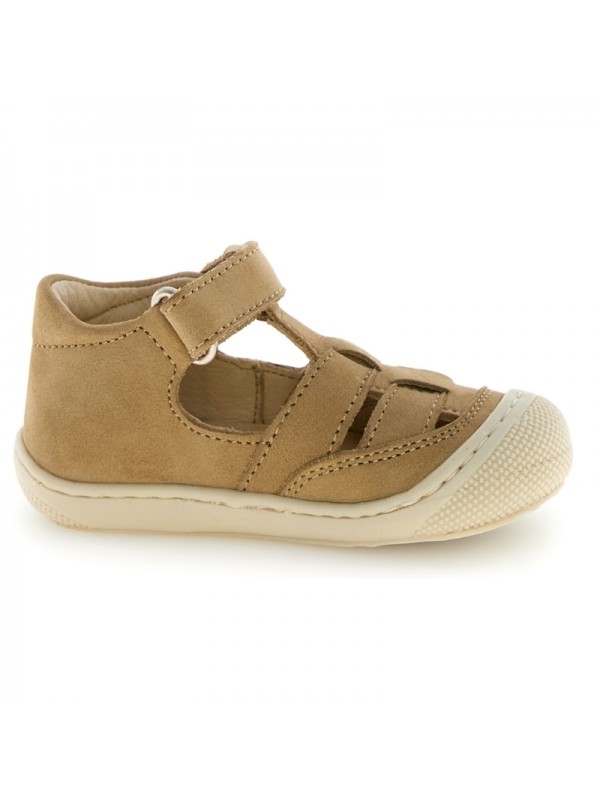 Spécialement conçue pour les premiers pas ou les petits pieds les plus dynamiques, voici la sandale semi-ouverte en nubuck souple. La construction avec lanières sur les orteils et bout renforcé assure confort et protection. Fermeture avec scratch sur la cheville, semelle intérieure en cuir et semelle extérieure en caoutchouc avec effet de salissure.
