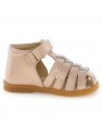Découvrez ces sandales en cuir, idéales pour les premiers pas des enfants. Confectionnées dans des matériaux de haute qualité, elles garantissent confort et durabilité. La doublure et la semelle intérieure en cuir souple offrent un soutien délicat tout au long de la journée, tandis que la fermeture Velcro pratique permet aux tout-petits de les enfiler facilement. Alliant élégance et fonctionnalité, ces sandales sont le compagnon idéal des petites exploratrices dans toutes leurs aventures quotidiennes.
