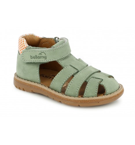 Sandales en cuir PIERRO de chez BELLAMY. Parfaites pour accompagner la croissance et les premiers pas de votre enfant, elles protègeront des chocs les petits orteils de bébé. Le contrefort, la hauteur de la tige et la fermeture à velcro assurent le meilleur maintien possible du pied de l'enfant.