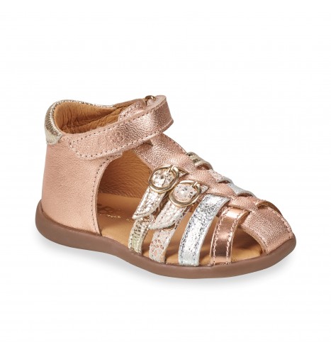 Sandales BABELLA de chez GBB, entièrement cuir, fermeture facile par scratch, ajustement idéal grâce aux deux boucles sur le coup de pied, semelle souple, tige arrière pour un bon maintien du pied et bout fermé rassurant pour protéger les doigts de pied.