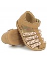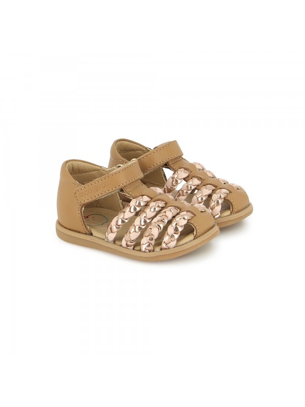 Cette sandale premiers-pas en cuir est un indispensable de la saison estivale. Pratique à chausser, elle dispose d'une bride à scratch pour un ajustement optimal à la cheville. Son bout fermé protège les orteils. Pensée et développée avec expertise par notre bureau d’études en Vendée, cette chaussure réunit qualité, confort et savoir-faire Shoo Pom.