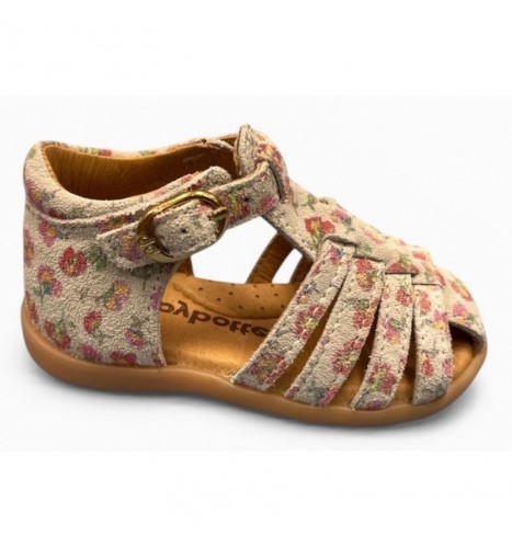 Ce modèle de sandale fermé sur le bout Babybotte est idéal pour les premières chaussures des bébés qui découvrent la marche grâce à leur souplesse, leur légèreté et leur semelle protectrice en caoutchouc qui facilite le chaussant et garantit une flexibilité et une aisance maximale pour l'enfant dans tous ses mouvements.fermeture par boucle,chaussant fin.