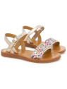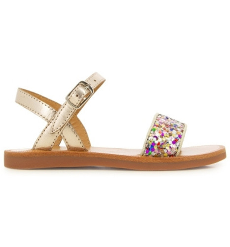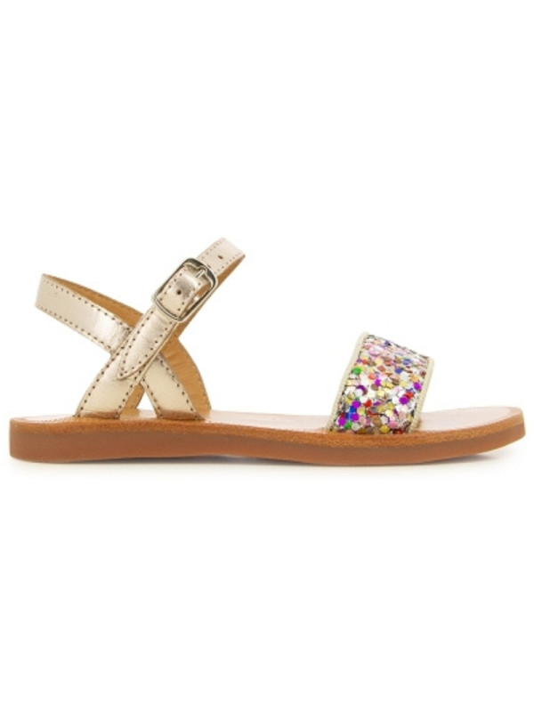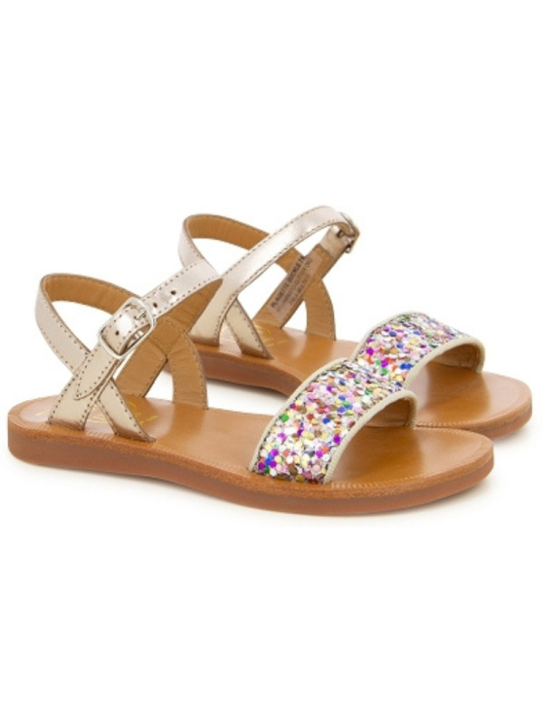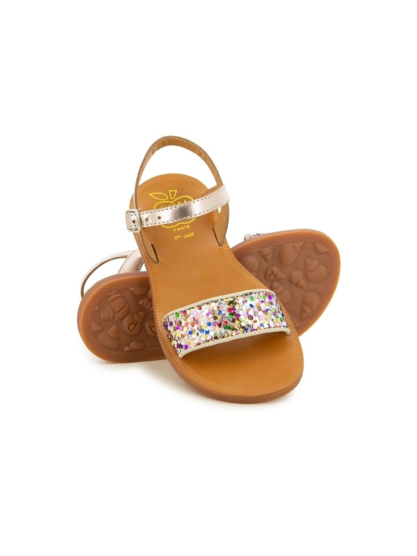 Cette sandale pour enfants est présentée dans une version en cuir métallisé, avec une bride pailleté multicolores. Cette chaussure souple et légère est conçue avec des matériaux de qualité pour le bon développement du pied. Elle s'ajuste facilement à la cheville grâce à sa boucle réglable.